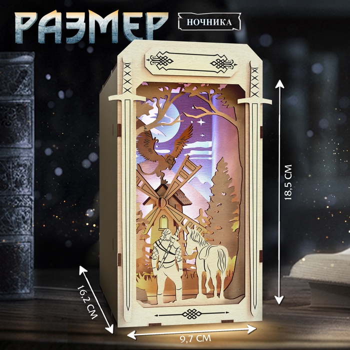 Ночник - конструктор своими руками из дерева «Тёмный воин», подставка - разделитель для книг — Характеристики