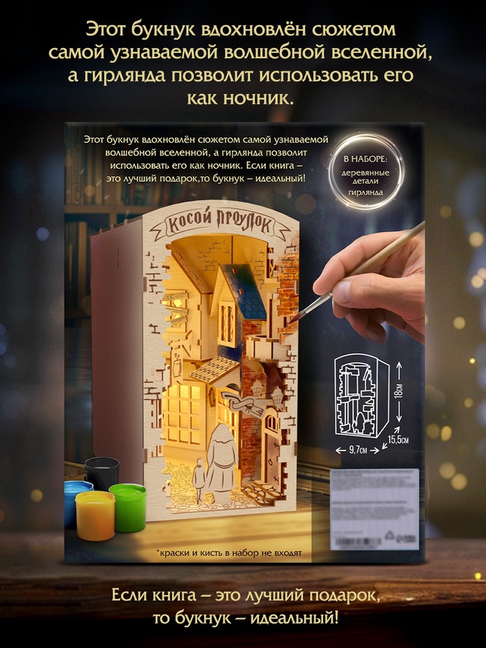 Конструктор для создания ночника из дерева станет не только стильным элементом декора, но и практичным аксессуаром для вашей комнаты. Этот набор объединяет в себе два функциональных решения: лампу ночного освещения и подставку-разделитель для книг. Отличный выбор для тех, кто ценит уют и порядок.