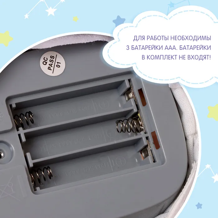 - Для работы необходимы 3 батарейки типоразмера AAA. Батарейки в комплект не входят.