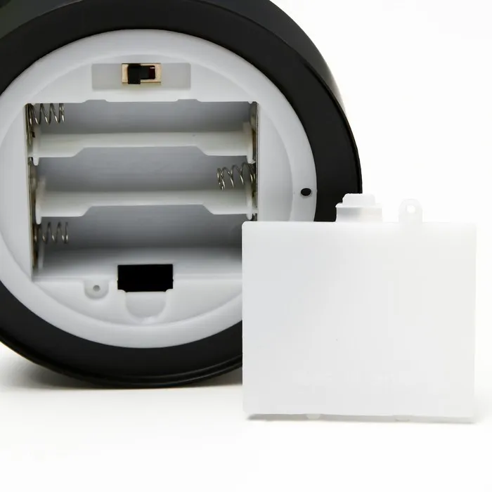 - Работает от трёх батареек типа ААА, не требует подключения к сети.