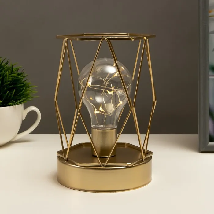 Ночник «Ромб» — это элегантный и стильный светильник, который станет украшением интерьера и создаст уютную атмосферу в любом помещении. Его оригинальный дизайн в виде металлической клетки с золотым покрытием добавляет изысканности, а мягкий свет делает его идеальным для вечернего освещения.