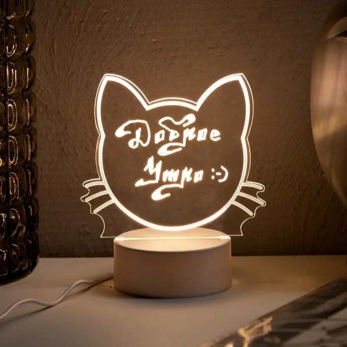 Ночник с маркером для заметок, 13.5x15.5x8.5 см, 5 LED, USB, кот, свечение тёплое белое — Характеристики