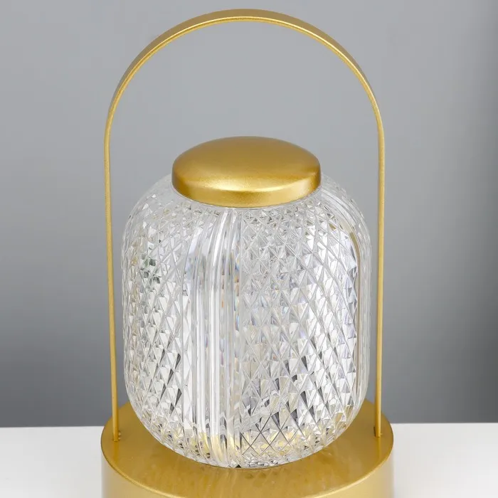 - Дизайн в стиле керосиновой лампы — золотой корпус и прозрачный плафон.