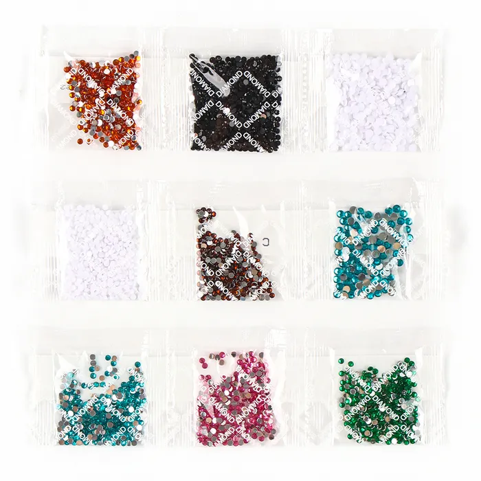 - Из пакетика с номером, который соответствует схеме, отсыпьте в ёмкость немного страз.