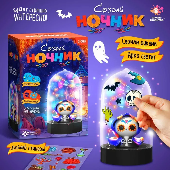 Набор для творчества «Ночник. Хэллоуин. Маска» — защитник вашего ребёнка тёмной ночью, необычный декор детской комнаты, сделанный собственными руками и приятное воспоминание о совместном времяпрепровождении при его создании.