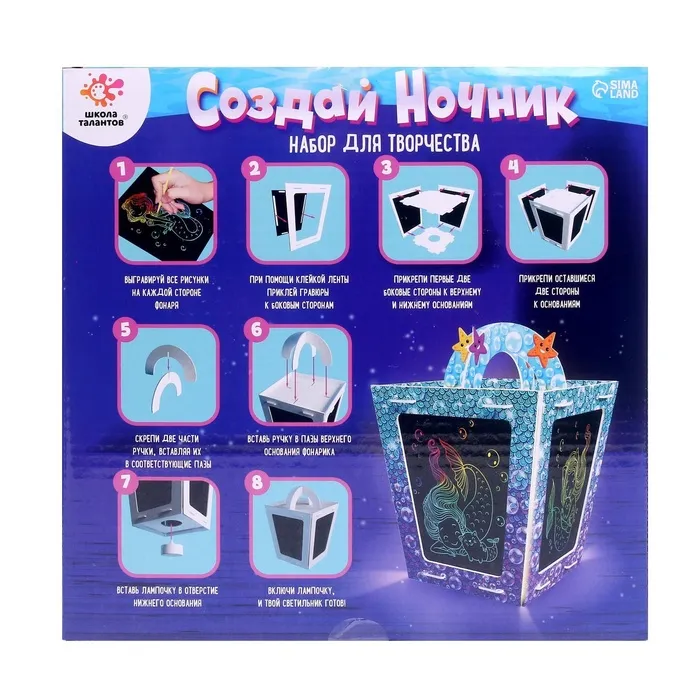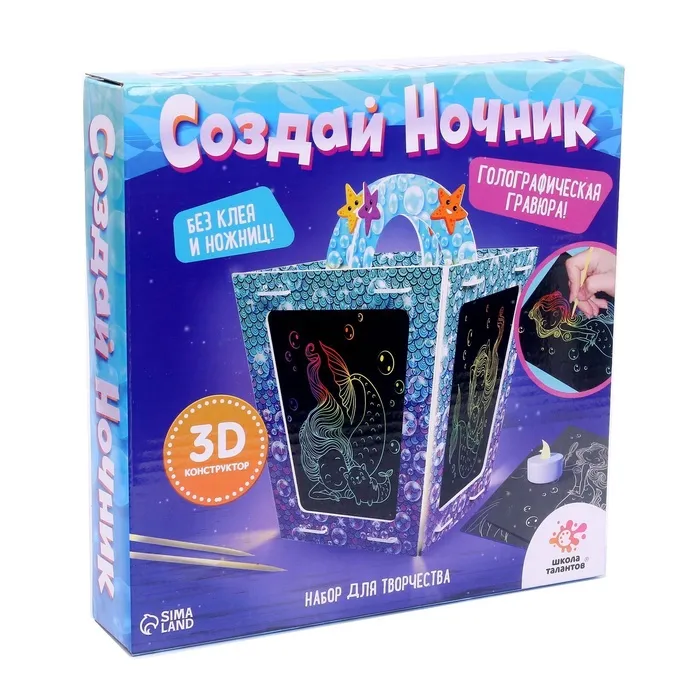 Ночник своими руками «Создай ночник с гравюрой. Русалочка», 3Д конструктор, голографическая гравюра, набор для творчества — Характеристики
