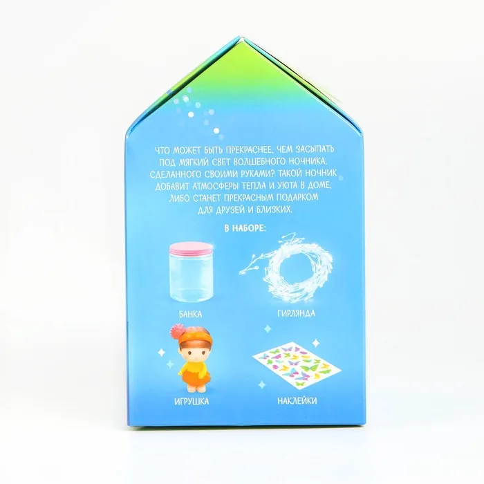 Набор поможет вам с малышом увлекательно провести время и создать настоящий ночник своими руками. Декорируйте содержимое изделия и украшайте его с помощью наклеек. И хотя это совсем не трудно, крохе придётся быть усидчивым и внимательным, совсем как взрослому!