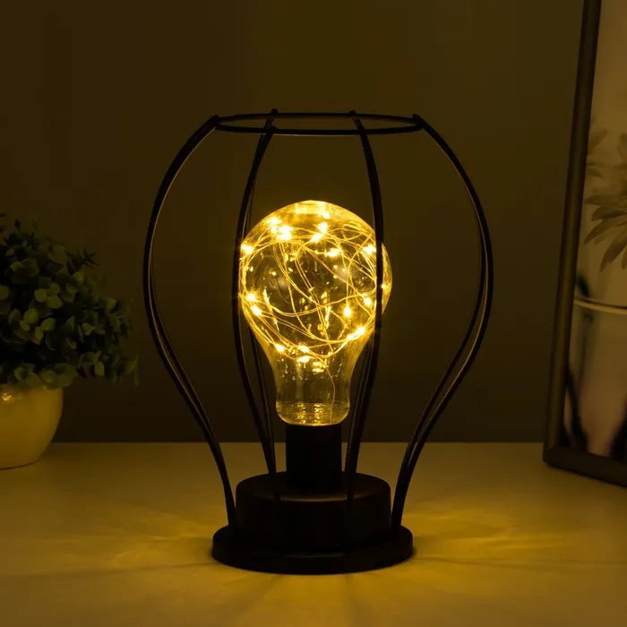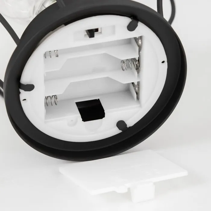 - Светильник работает от 3 батареек типа АА, что делает его мобильным и независимым от розеток.
