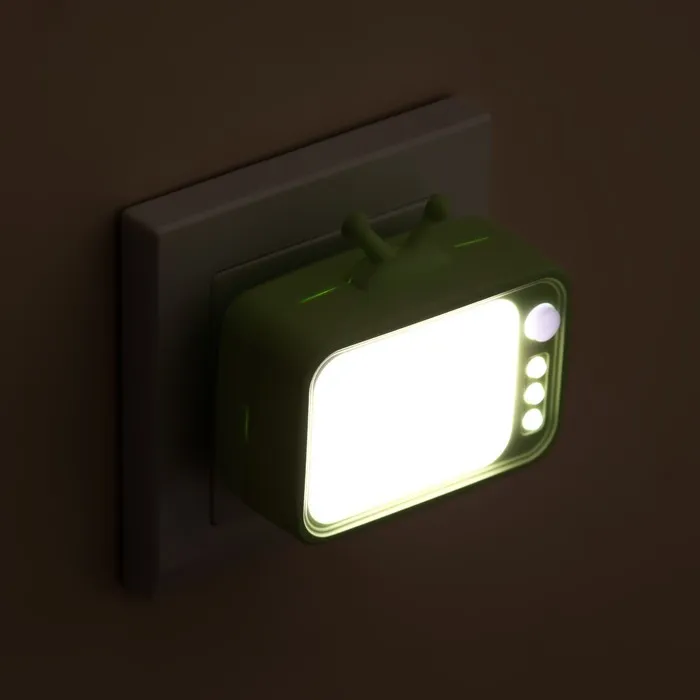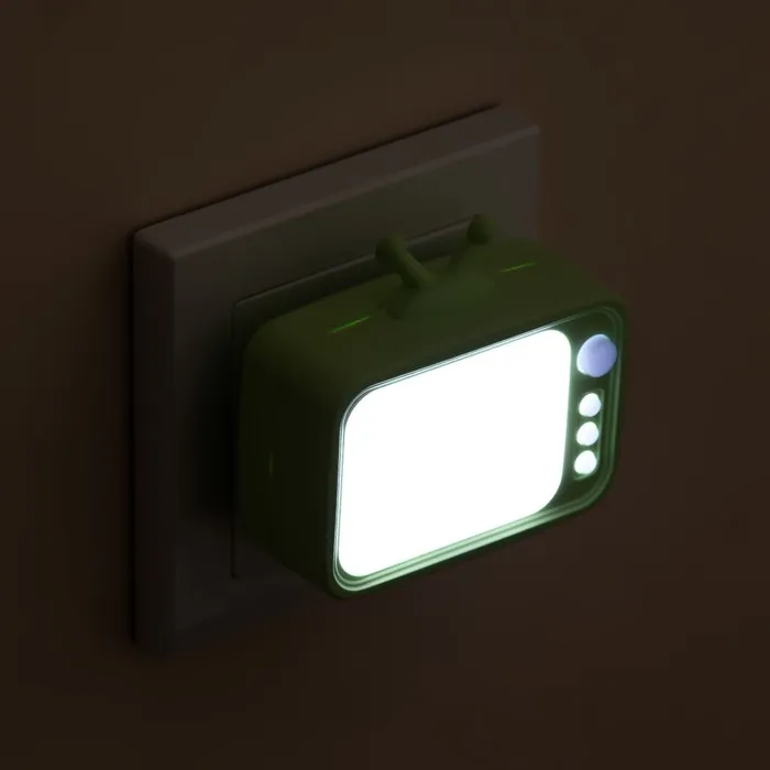 Ночник в виде телевизора — это оригинальный и функциональный аксессуар для детской комнаты или креативный подарок на праздник. Он подключается прямо к розетке, а его дизайн в форме миниатюрного телевизора с зелёным корпусом добавляет интерьеру игривости и уюта. Мягкий свет создаёт комфортную атмосферу, которая подходит для вечернего времени.