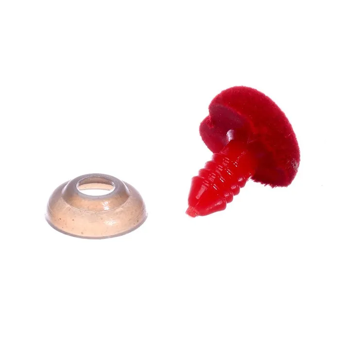 2. С изнаночной стороны на винт наденьте шайбу и задвиньте до упора, плотно прижимая нос к ткани.