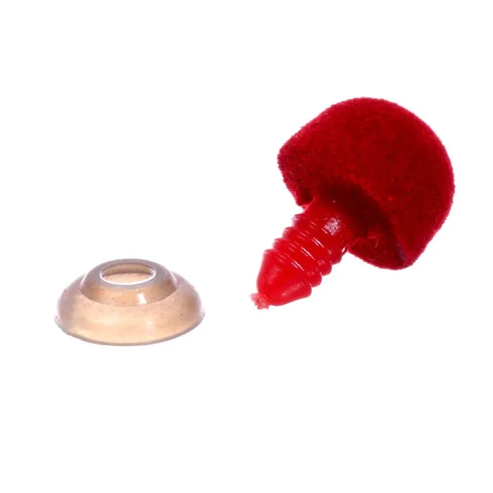 - С изнаночной стороны на винт наденьте шайбу и задвиньте до упора, плотно прижимая нос к ткани.