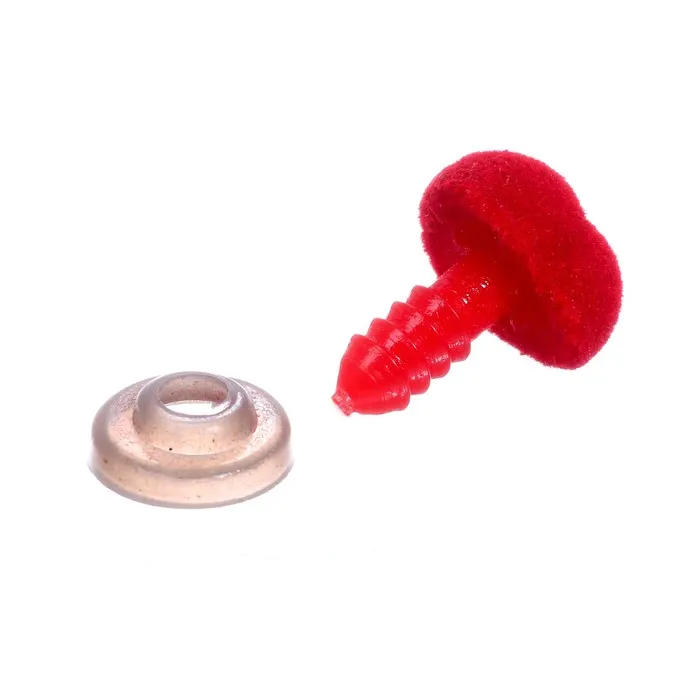 2. С изнаночной стороны на винт наденьте шайбу и задвиньте до упора, плотно прижимая нос к ткани.