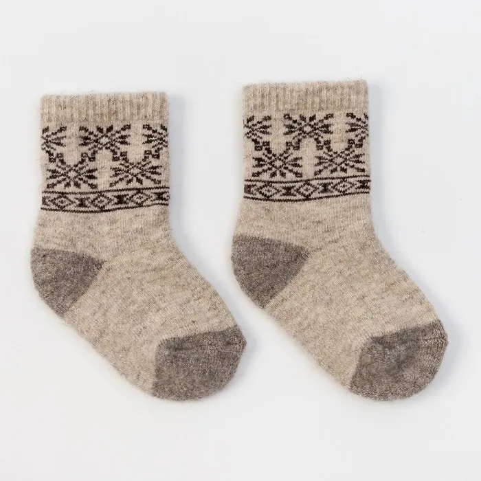 Носки детские из монгольской шерсти «Снежинки», серые, размер 10-12 см — Характеристики