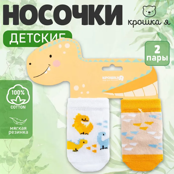 Носки детские Крошка Я «Динозавр», набор 2 пары, 10-12 — Характеристики