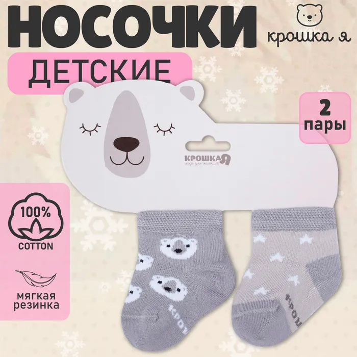 Носки детские Крошка Я «Мишка», 2 пары, 8-10 см — Характеристики