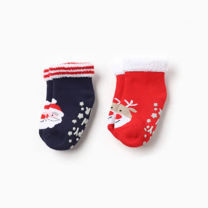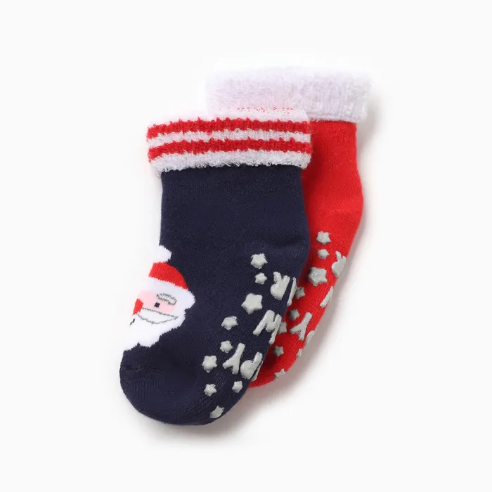 Носки детские махровые Крошка Я «Новогодние мордашки», набор 2 пары, размер 8-10 см