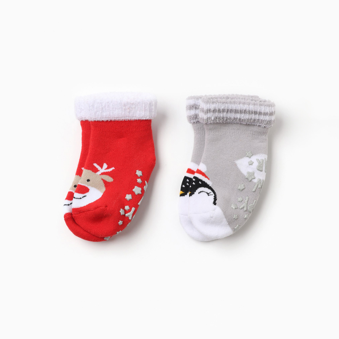 Носки детские махровые Крошка Я «Пингвин и Олененок», набор 2 пары, размер 8-10 см