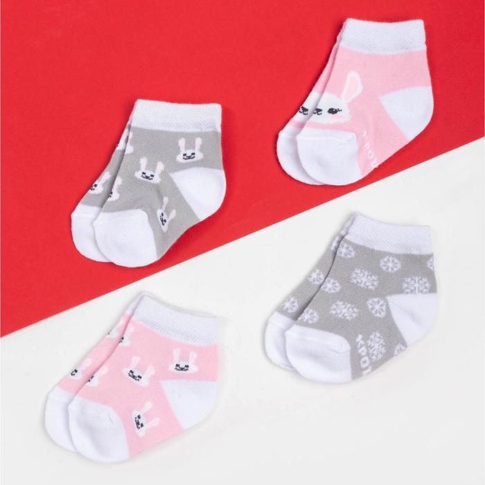 Носки детские новогодние для девочки Крошка Я «Зайчик», набор 4 пары, 8-10 см — Характеристики