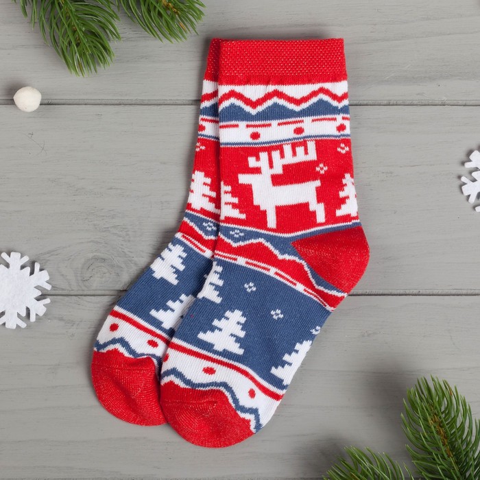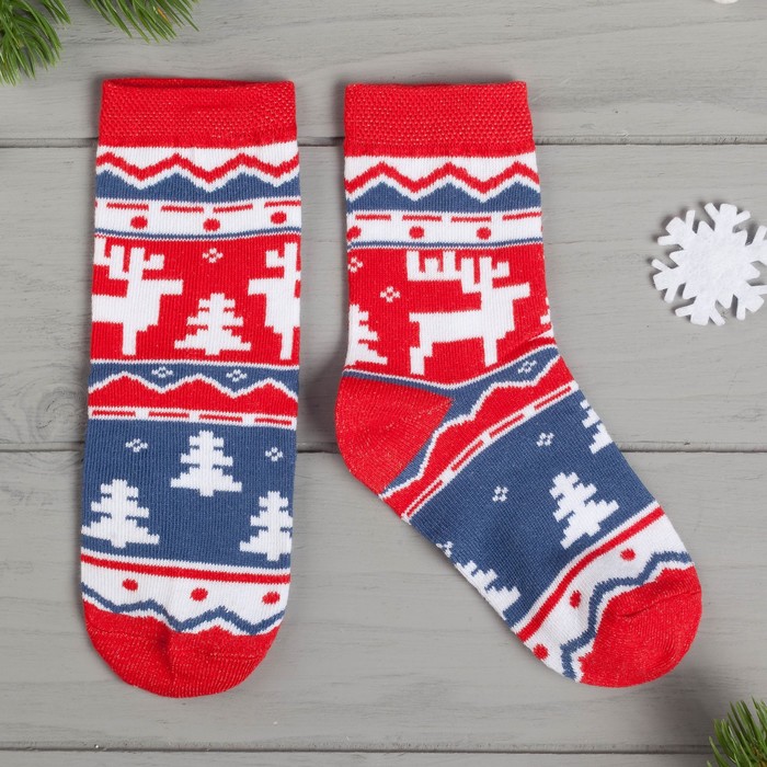 Носки детские новогодние KAFTAN «Скандинавский» 18-20 см, синий/красный — Характеристики