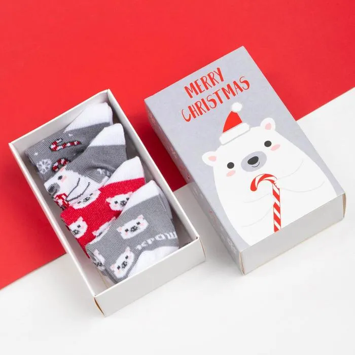 Носки детские новогодние Крошка Я «Мишка», набор 4 пары, 8-10 см — Характеристики