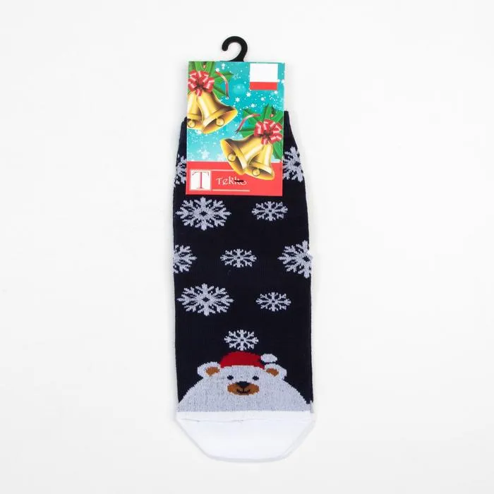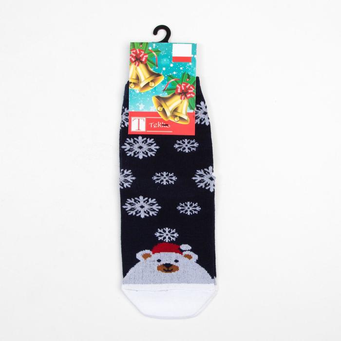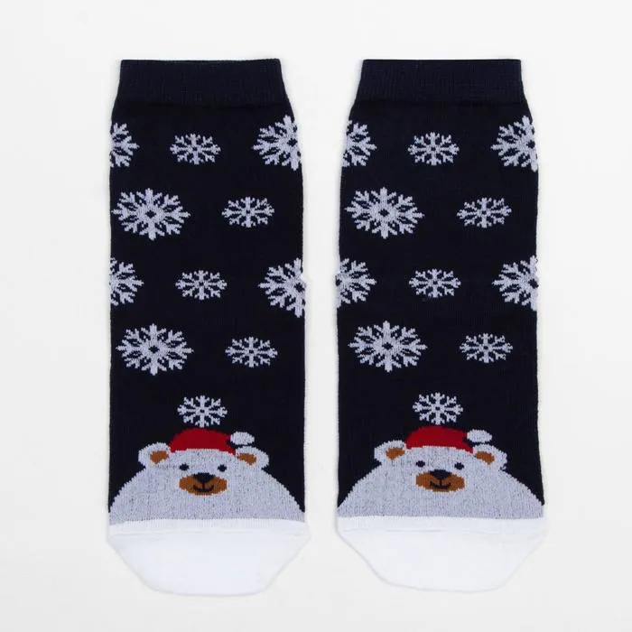 Носки детские новогодние «Мишка и снежинки» цвет синий, размер 22-24 — Характеристики