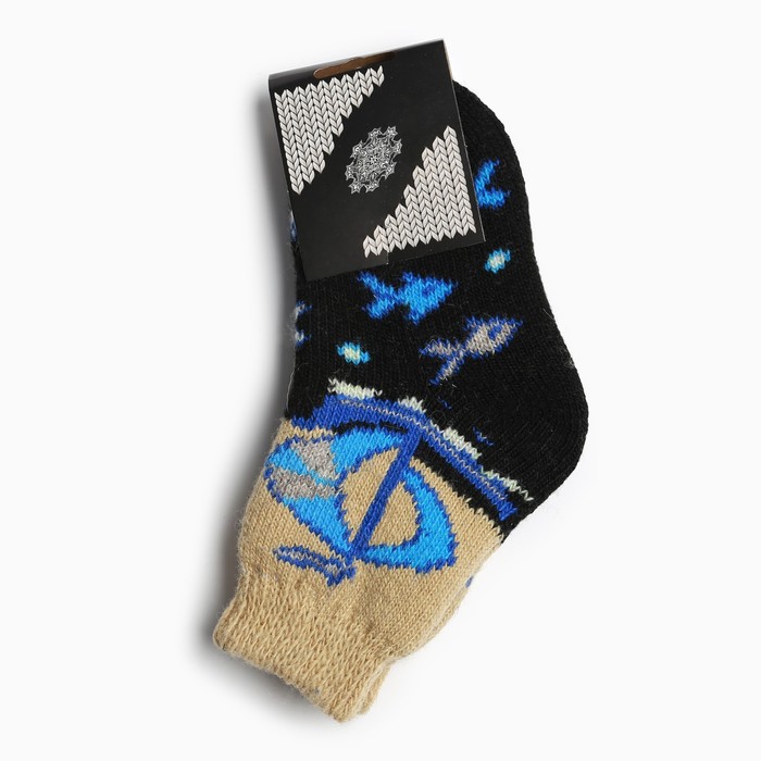 Носки детские шерстяные «Кораблик», чёрные, р-р 18
