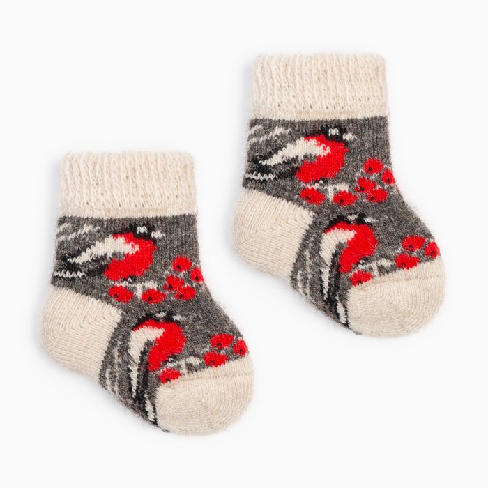 Носки детские шерстяные «Снегирь в снегу», серые, размер 14 — Характеристики