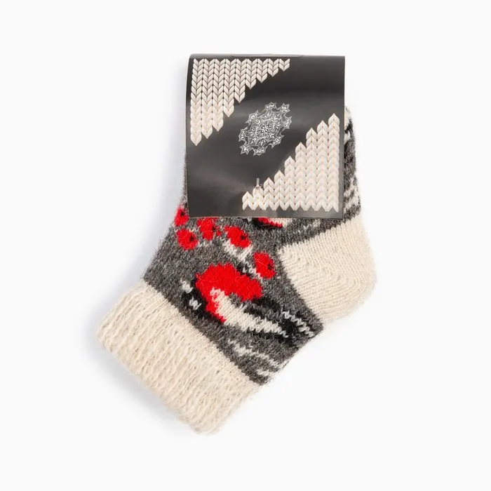 Носки детские шерстяные «Снегирь в снегу», серые, размер 22 — Характеристики