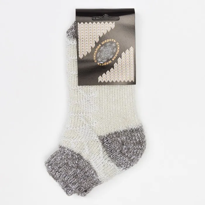 Носки детские шерстяные укороченные, белый/серый, размер 14-16 — Характеристики
