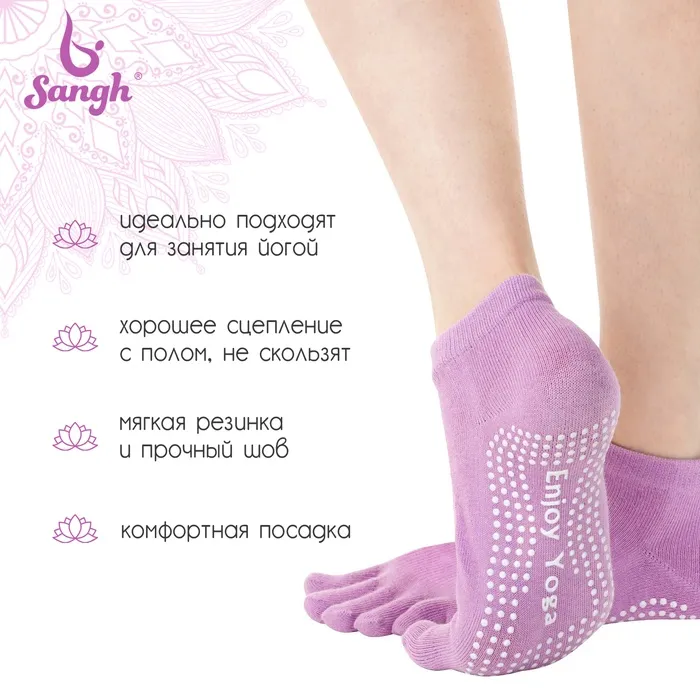 Носки для йоги Sangh, р. 36-39 см, цвет сиреневый — Характеристики