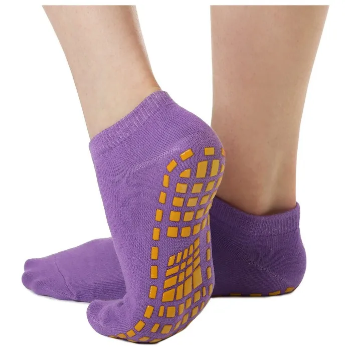 Противоскользящие носки подходя для занятий йогой, пилатесом или балетом. Благодаря прорезиненной подошве можно выполнять любые упражнения без использования коврика, не боясь, что ваши ноги начнут скользить на поверхности.