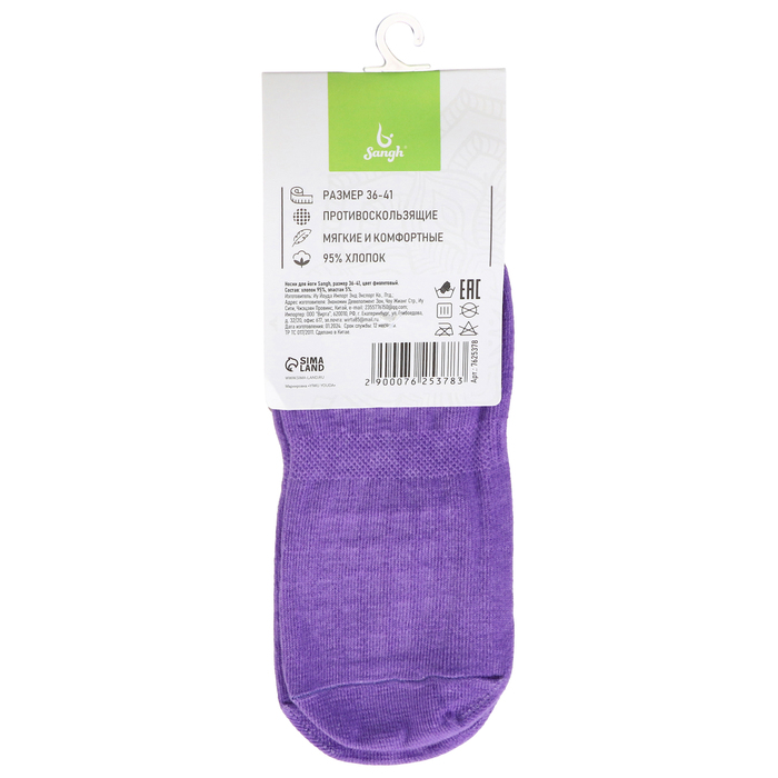 Носки для йоги Sangh, р. 36-41, цвет фиолетовый — Характеристики