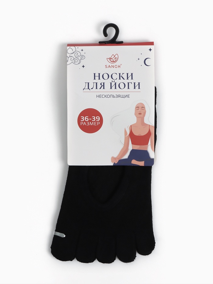 Носки для йоги Sangh, р.36-39, прорезиненные, черные — Характеристики
