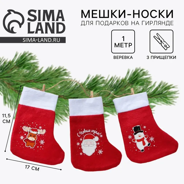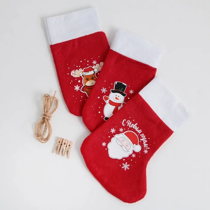 Новогодние носки для подарка подарят вам волшебную атмосферу тепла и уюта, а также сделают ваш праздник ярким и запоминающимся! Новогодний носок - лучший аксессуар, благодаря которому подарок на Новый год станет незабываемым, как для ребёнка, так и для взрослого. Дети с трепетом ждут новогодние сюрпризы именно в эти носочки! Новогодний носок - элемент декора и украшения дома, мешок для подарка отлично впишется в любой интерьер. Данный элемент идеально использовать в качестве упаковки подарка. Мешочек имеет петельку, благодаря которой носок можно повесить у камина, на новогоднюю ёлку.