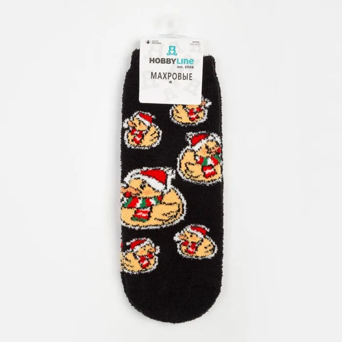 Носки махровые новогодние женские «Утки в шапках», цвет чёрный, размер 36-40 — Характеристики