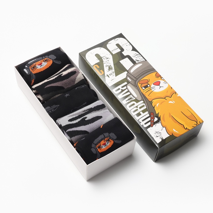 Носки мужские на 23 февраля KAFTAN «Кот», набор 5 пар, р. 41-44 (27-29 см)