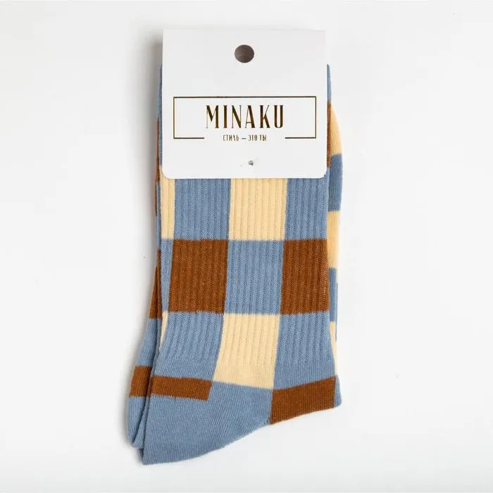 Носки MINAKU цвет синий/бежевый, размер 36-41 (23-27 см) — Характеристики