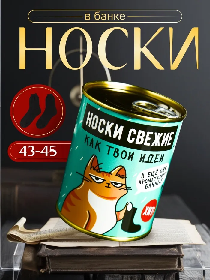 Носки мужские черные в банке ароматизированные «Свежие, как твои идеи», аромат апельсин — Характеристики