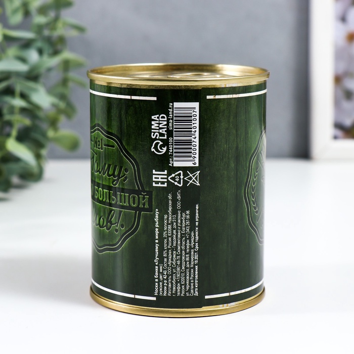 Носки мужские черные в банке «Лучшему в мире рыбаку» — Характеристики