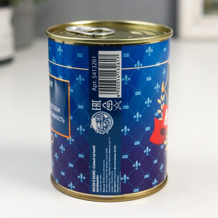 Носки мужские черные в банке «Самый лучший начальник» — Характеристики