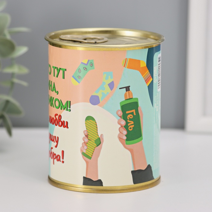 Носки мужские черные в банке «Всем, кто тут мужчина, с праздником!» — Характеристики