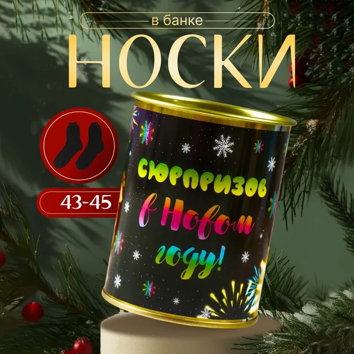 Носки мужские чёрные в банке «Сюрпризов в новом году» — Характеристики