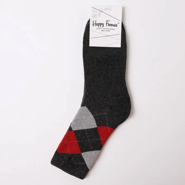 Носки мужские шерстяные "Снежинка в орнаменте" цвет серый, размер 25