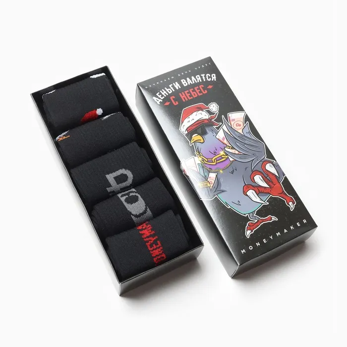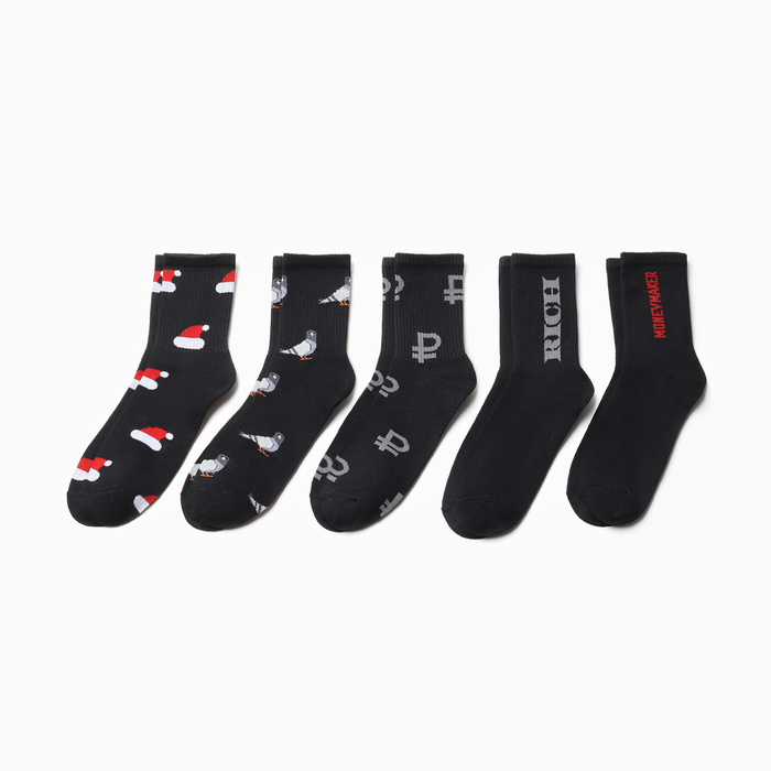 Носки мужские новогодние KAFTAN «Деньги валятся с небес», набор 5 пар, размер 41-44 (27-29 см) — Характеристики