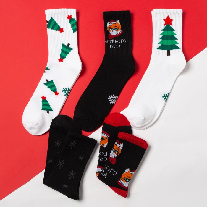 Носки мужские новогодние «Весёлого года», набор 5 пар, 41-44 (27-29 см) — Характеристики
