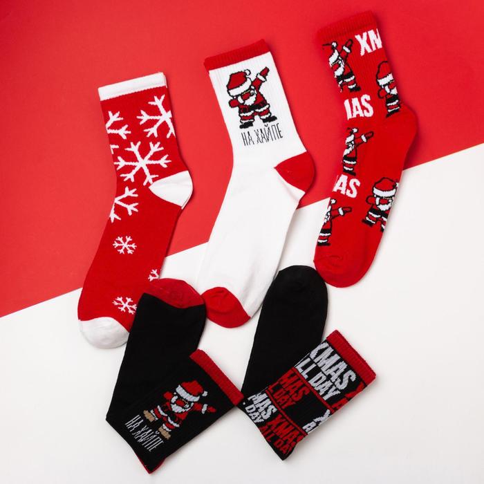 Носки мужские новогодние XMAS, размер 41-44 (27-29 см), набор 5 пар — Характеристики