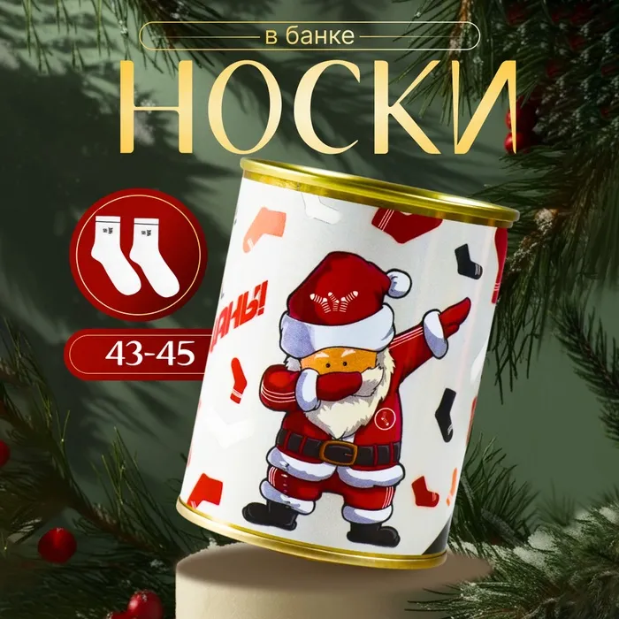 Носки мужские с принтом в банке «С новым годом, пацаны!», цвет белый — Характеристики
