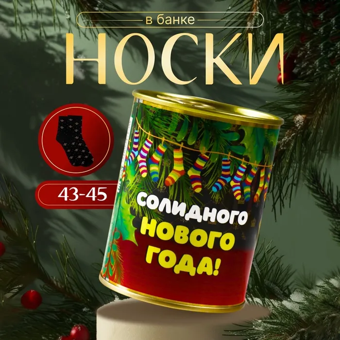 Носки мужские с принтом в банке «Солидного нового года» — Характеристики