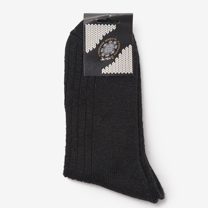 Носки мужские шерстяные цвет чёрный рубчик, размер 29