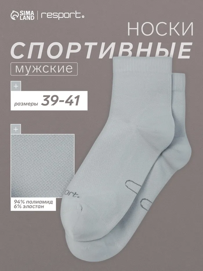 Носки мужские спортивные с компрессией Resport, размер 39-41, серые — Характеристики
